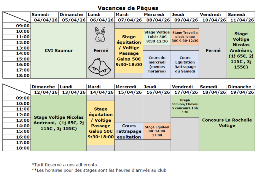 Stages techniques pour progresser, améliorer sa préparation physique specifique d'un cavalier, ouverts aux cavaliers du club comme aux cavaliers extérieurs.