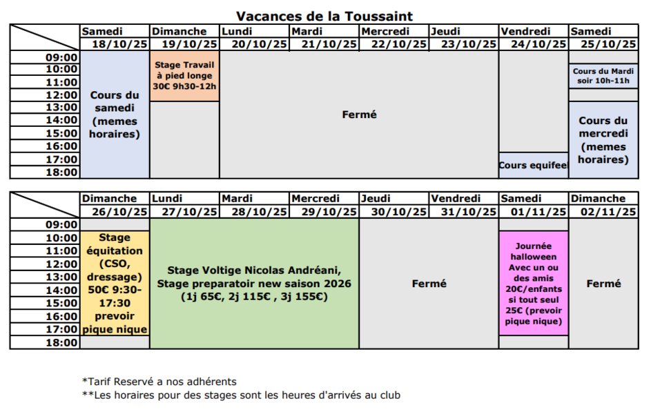 Stages techniques pour progresser, améliorer sa préparation physique specifique d'un cavalier, ouverts aux cavaliers du club comme aux cavaliers extérieurs.